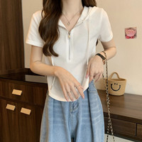 【百搭拉鏈帽衫】特殊設計層次感,不會整件超呆板~拉鍊拉下鎖骨配項鍊,女人味UPUP_棉質舒適.延展性高.必須擁有