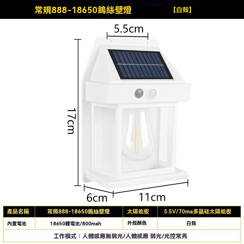 無需拉線0電費 太陽能鎢絲壁燈 戶外花園 庭院 防水防雷 人體感應照明