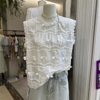 2025新款韓系重工蕾絲刺繡無袖襯衫背心 夏天高級感洋氣別致小衫 舒適透氣 百搭顯氣質