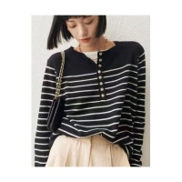 【日系文藝通勤】新款設計感圓領撞色條紋針織衫藏肉顯瘦上衣,減齡百搭,新年限時特惠,+300再得1入組