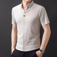 男士時尚休閑冰絲潮流修身翻領輕奢百搭商務襯衫