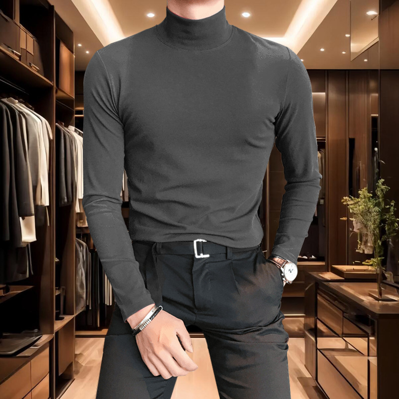 【總裁同款】男生秋冬大碼 德絨半高領長袖男士純色秋裝 上衣春秋氣質打底衫內搭中領秋衣