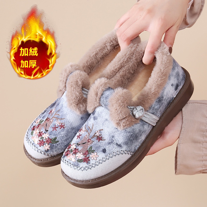 一腳蹬加絨加厚棉鞋 鞋身國風刺繡精緻典雅 傳統韻味濃郁 穿著行走間盡顯東方雅致氣質