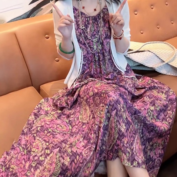 夏天怕熱又想穿得靚 印花吊帶裙寬鬆版型超藏肉 透氣面料擋暑氣 周末野餐 逛市集穿超吸睛